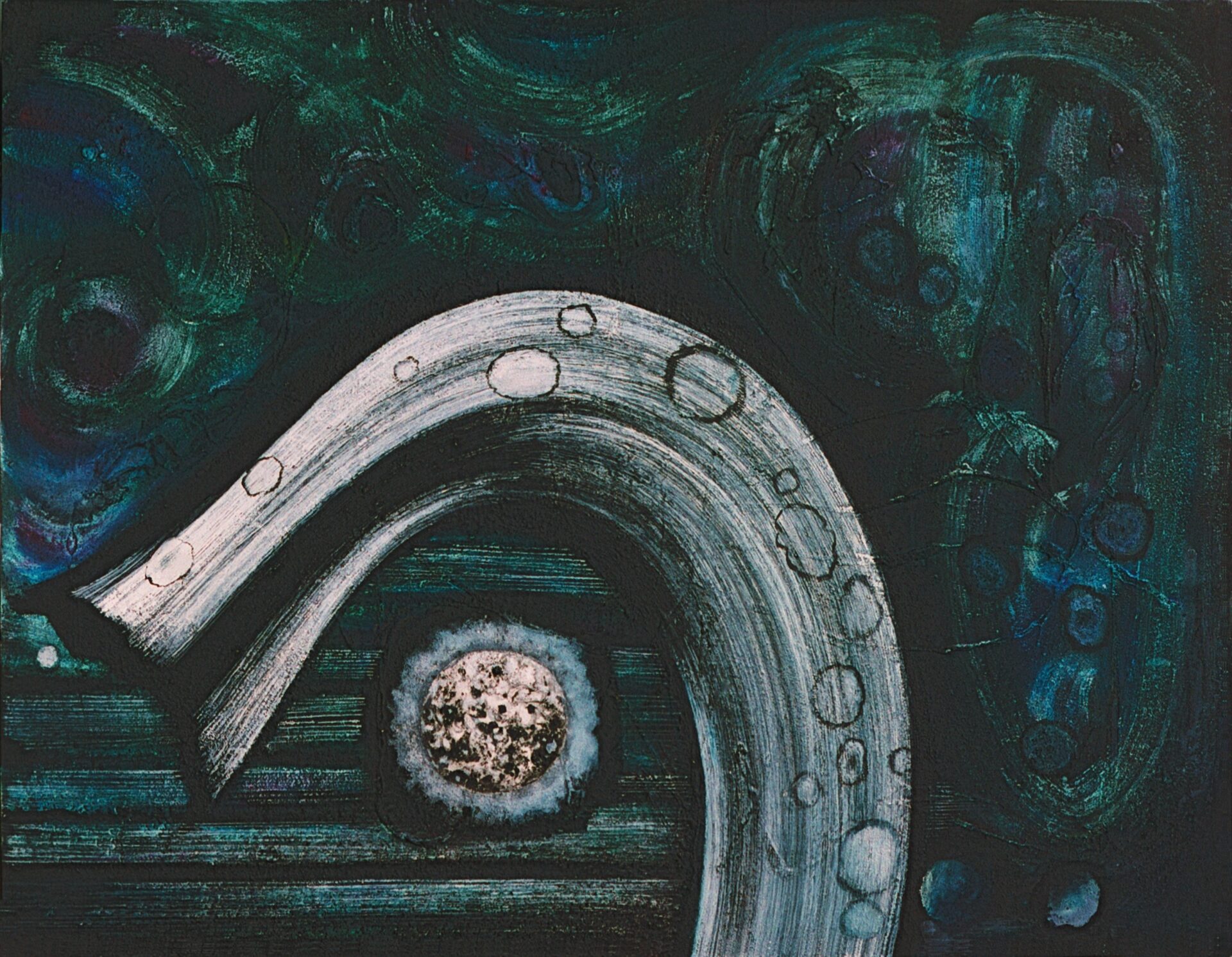 No.00133 painting 2025.04.082025.12.20 Title:抗Size:h 85.3 X w 100 cmDate:1993 独りで頑張っていると、〝外れ猿〟などと嘲笑し、ただ足を引っ張るだけの悲しい風土叫んだって何になる...踏まれ踏まれの小草の花が...