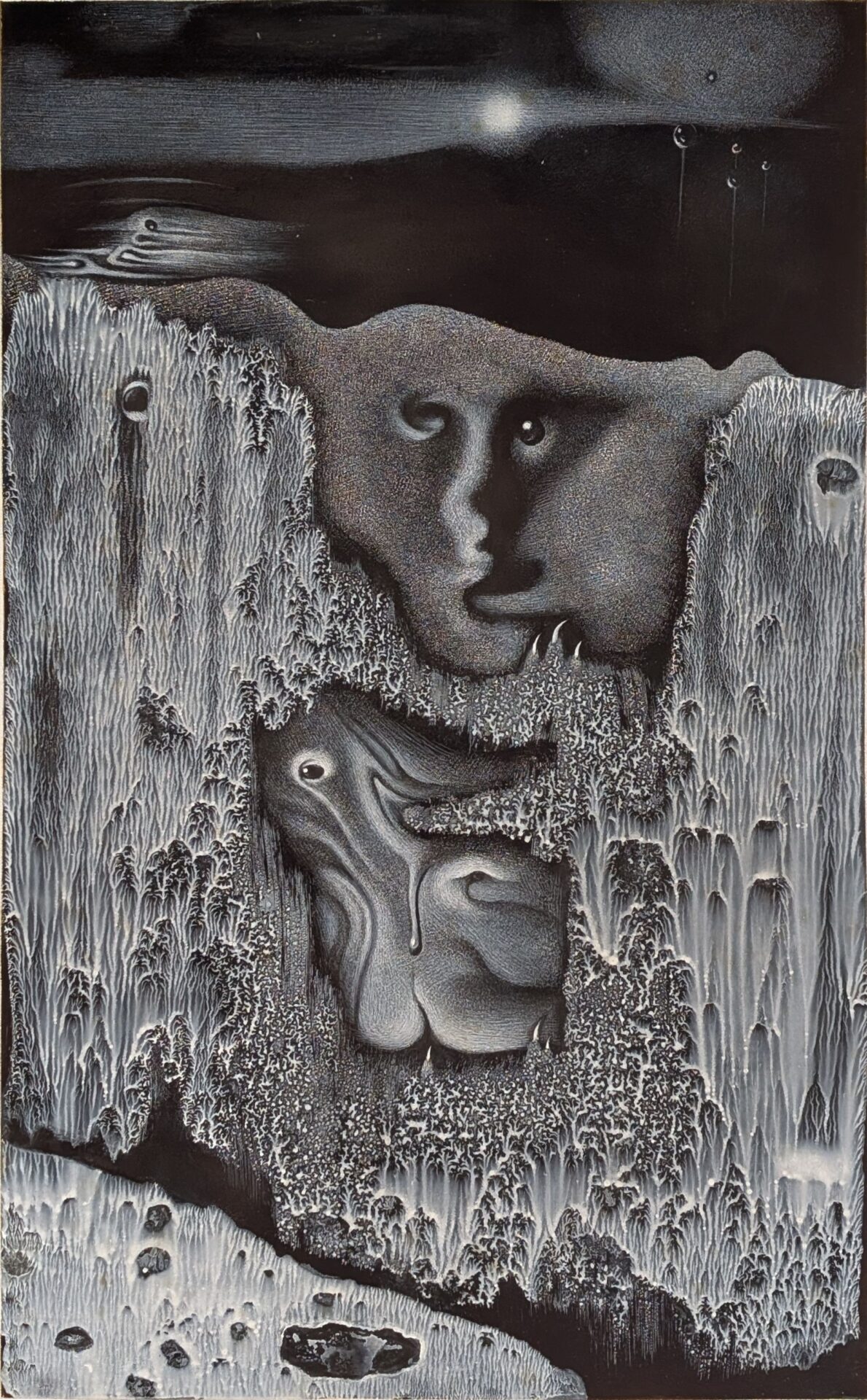 ギャラリー 絵の前を立ち去りがたかった。いずことも知れぬ荒涼とした場所で無言の叫びを上げる群像、白と黒の絵の具だけを用いたモノトーンの幻想世界。孤高の日本画家・白藤朱根氏の近年の作品は、仏が姿を見せぬ...