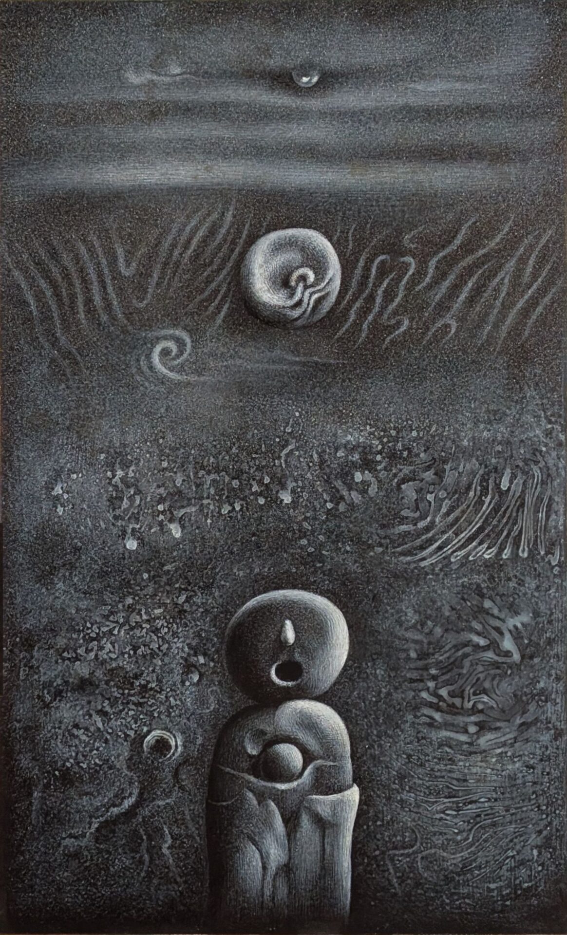 ギャラリー 絵の前を立ち去りがたかった。いずことも知れぬ荒涼とした場所で無言の叫びを上げる群像、白と黒の絵の具だけを用いたモノトーンの幻想世界。孤高の日本画家・白藤朱根氏の近年の作品は、仏が姿を見せぬ...